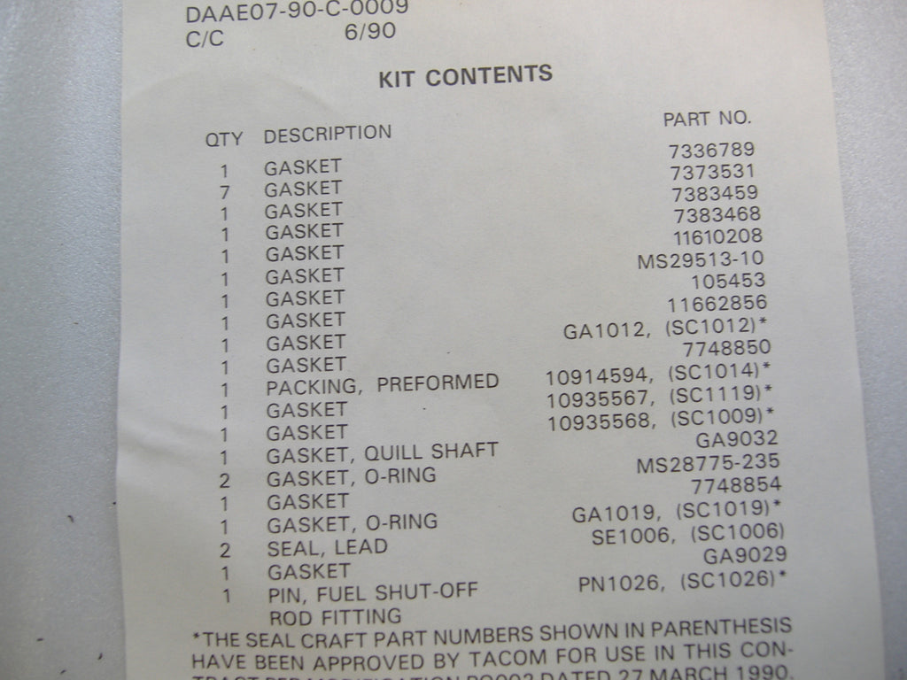 HARD TO FIND COMPLETE INJECTION PUMP GASKET SET FOR M35A2 AND M54A2 SERIES MULTI FUEL POWERED MILITARY TRUCKS.