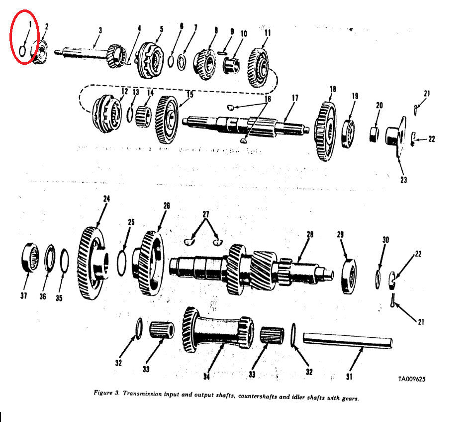 INPUT BEARING RETAINING CLIP FOR 2.5 TON MANUAL TRANSMISSIONS.